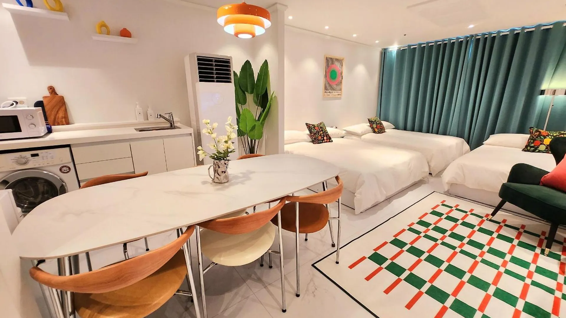 公寓距离弘益大学地铁站有550米。 旅客可以游览新平衡购物中心或距离公寓很近的家庭牙科,距离这套公寓350米。 它位于弘大区,所以可以快速到达特丽爱3d美术馆。 首尔塔距离公寓仅几步之遥。